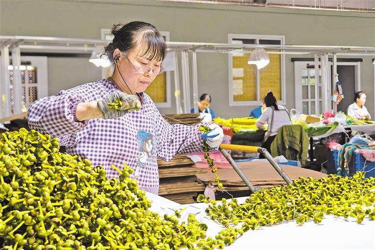 “我4年前就到車間上班,時(shí)間靈活,不耽誤農(nóng)活和接送孩子,每月收入2000元,感覺(jué)特別充實(shí)?!甭〉驴h觀莊鄉(xiāng)大莊村村民王洋洋已成為熟練的“妙手生花”者,一片片花瓣經(jīng)她手變?yōu)槎涠洹磅r花”。車間負(fù)責(zé)人潘小鳳說(shuō),車間主要生產(chǎn)家居、婚慶及各類節(jié)慶用的人造花飾,年產(chǎn)值30余萬(wàn)元,帶動(dòng)30多名婦女就近就業(yè)。