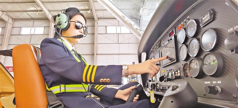 6月17日,清晨的陽光灑在內(nèi)蒙古鄂托克前旗通用機場的跑道上,一架白色輕型運動飛機前,21歲的李佳瑩正專注地檢查機翼、測試儀表。她的長發(fā)束在腦后,顯得干練而利落。