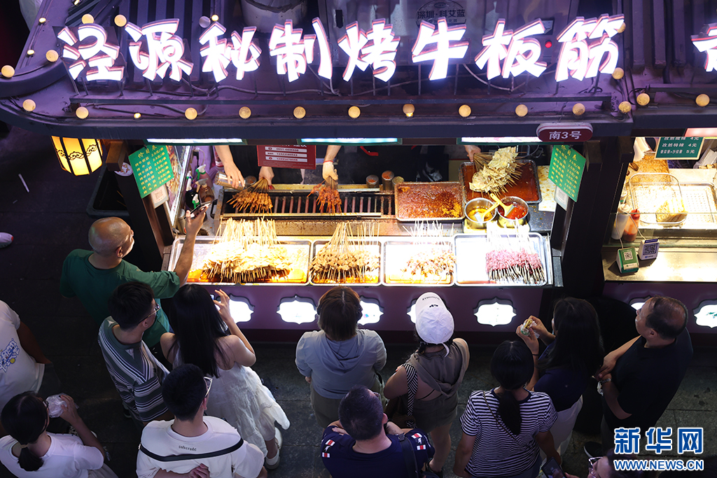 當下正值暑期旺季,立秋后的寧夏夜晚涼爽怡人,在銀川懷遠夜市,來自全國各地的游客和本地市民絡(luò)繹不絕,夜市里“煙火氣”升騰,銀川“夜經(jīng)濟”在火熱中不斷綻放。新華網(wǎng) 張潔龍 攝