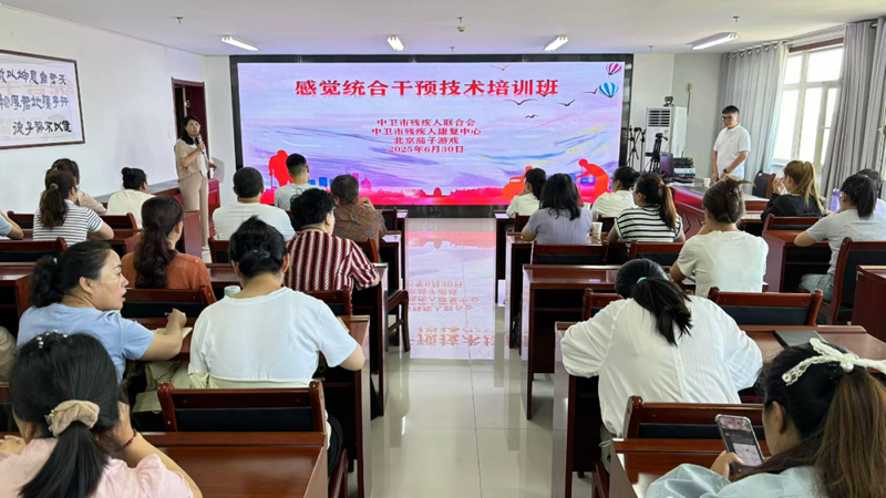 寧夏新聞網(wǎng)訊(記者 倪金鳳)“我的孩子以前一上課就哭,除了水,似乎沒(méi)什么能引起她的興趣。但上完陳老師的課,我驚喜地發(fā)現(xiàn)孩子開(kāi)始對(duì)其他事物產(chǎn)生興趣,還會(huì)主動(dòng)要抱抱了?!碧厥鈨和笱螅ɑ┑膵寢尫窒淼馈=?,中衛(wèi)市殘聯(lián)、中衛(wèi)市殘疾人康復(fù)中心聯(lián)合舉辦為期五天的“感覺(jué)統(tǒng)合干預(yù)技術(shù)培訓(xùn)班”。