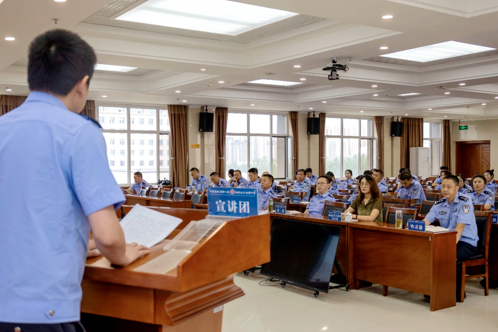 銀川市公安局廉政警示教育巡回宣講團(tuán)分別以“黨史上的作風(fēng)建設(shè)”“一以貫之堅(jiān)持自我革命”“鍥而不舍糾治頑瘴痼疾”“一子落地滿盤皆活”4個(gè)部分進(jìn)行主題宣講,通過回顧黨的作風(fēng)建設(shè)歷史脈絡(luò)、深刻剖析公安隊(duì)伍違紀(jì)違法和執(zhí)法突出問題典型案例、分享身邊民警先進(jìn)榜樣故事等,教育引導(dǎo)全警以“身邊人、身邊事、身邊案”為鏡鑒,守住拒腐防變防線,進(jìn)一步端正執(zhí)法理念、改進(jìn)執(zhí)法方式、轉(zhuǎn)變執(zhí)法態(tài)度,切實(shí)增強(qiáng)“好好說話、規(guī)范執(zhí)法”和“同理心”意識(shí),以好作風(fēng)好形象展現(xiàn)公安隊(duì)伍新?lián)?dāng)新作為。