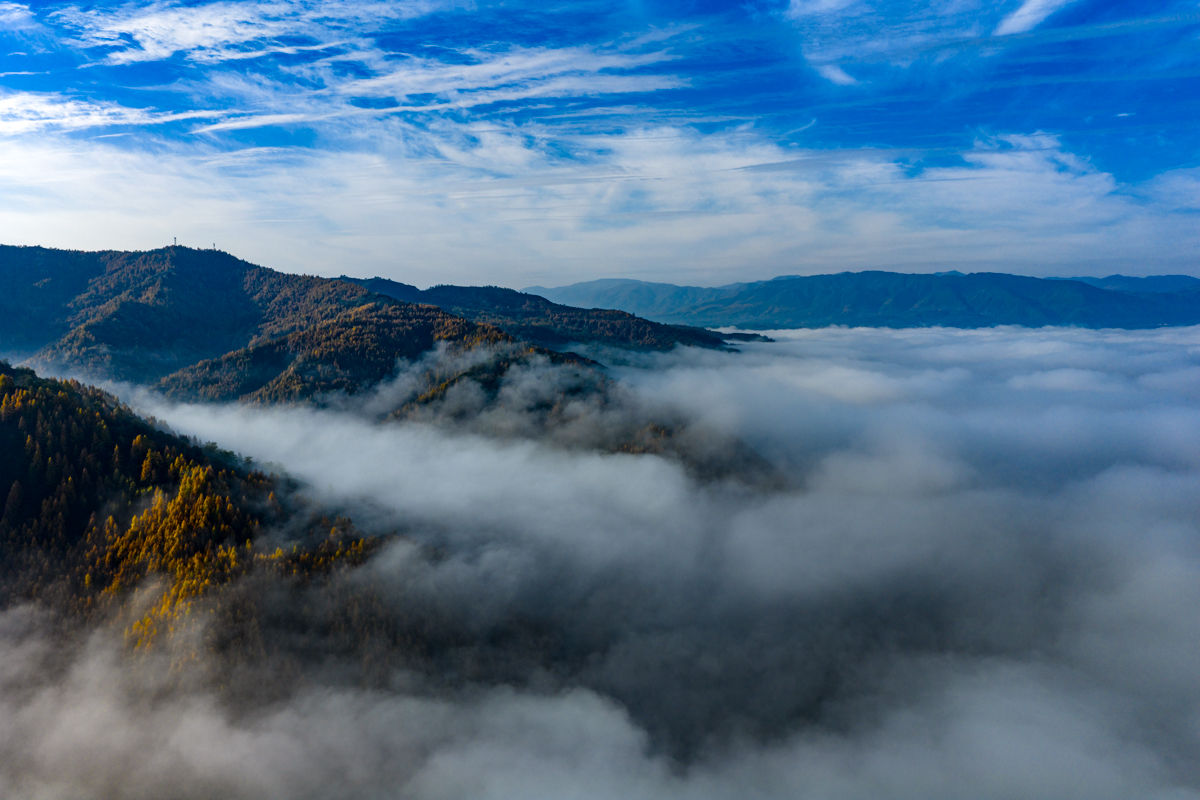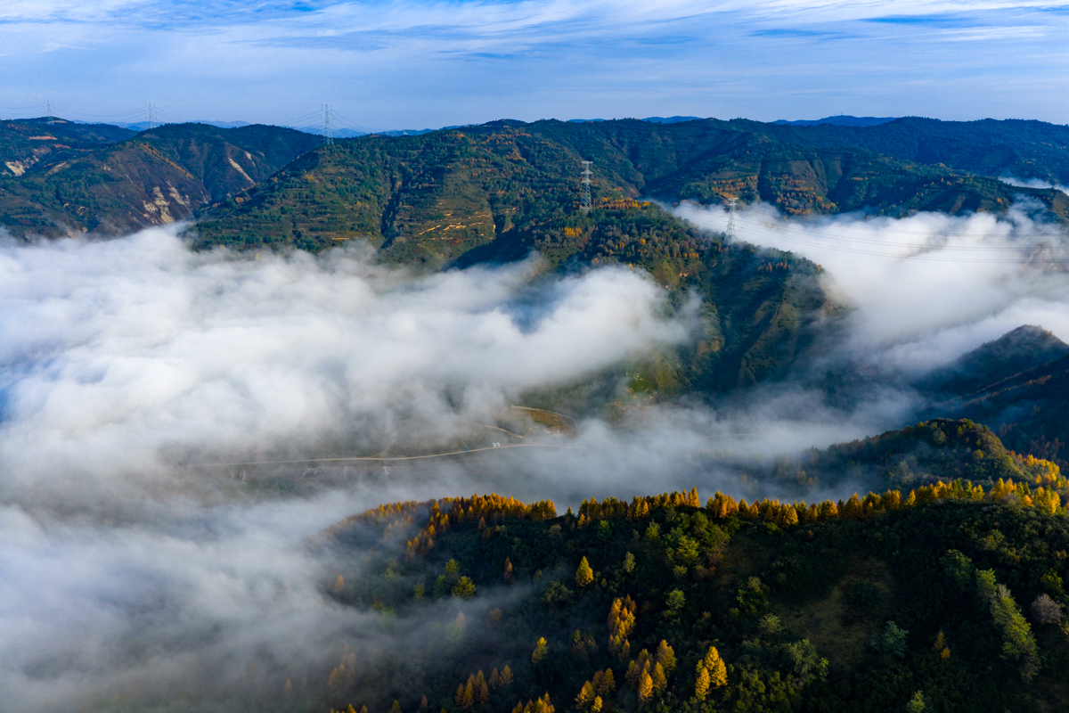 10月19日,一場秋雪之后的寧夏涇源縣,云海茫茫,如紗般的迷霧在秋色斑斕的涇源山水間游動,讓這個秋天更加迷人。 寧夏新聞網(wǎng)記者 祁瀛濤 攝