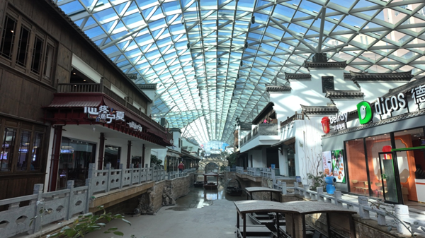 “我們項目的核心亮點便是創(chuàng)新打造了銀川首個配備全景天窗的室內(nèi)江南水街主題場景,建筑面積約1.4萬平方米,定位為城市級文商旅娛購體驗中心,通過規(guī)劃主題場景,將江南徽派園林美學(xué)與西北地域特色融合,讓市民實現(xiàn)‘不出西北,盡覽江南’的體驗?!绷⑦_融樂匯總經(jīng)理蘇小梅說。